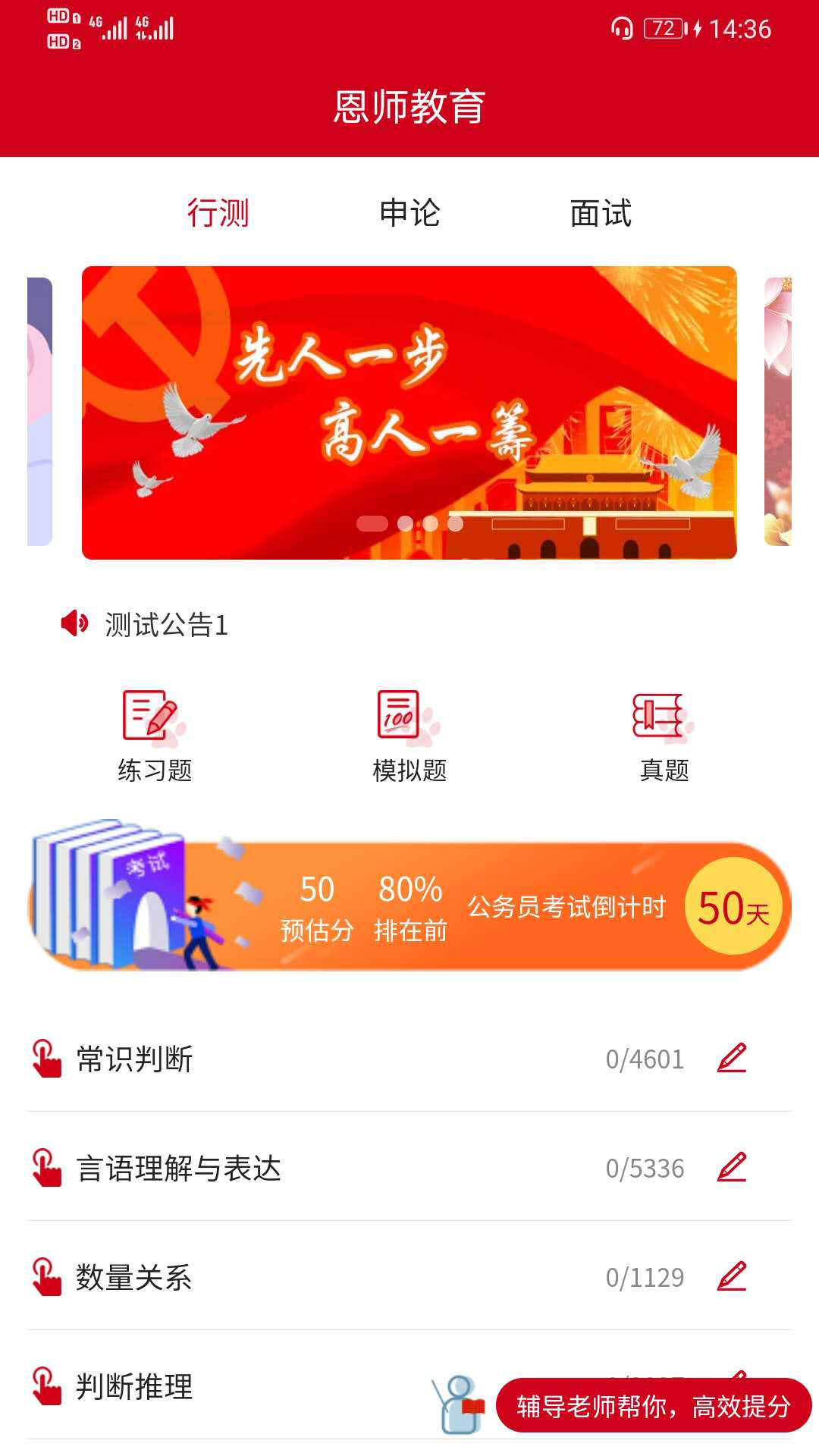 恩师app拥有覆盖各类公职考试的庞大题库资源,所有题目均由专业教研团队精心筛选,确保考点全面、解析权威。通过智能组卷和专项练习功能,用户可以高效掌握重点难点,显著提升备考效率。