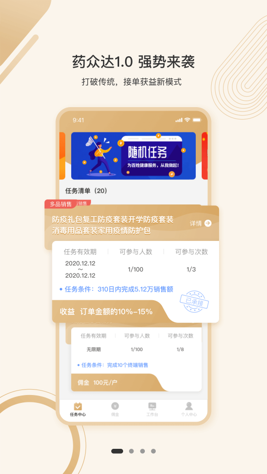 药众达app集成了七大核心功能模块:任务中心提供每日工作指引;佣金管理系统实时计算和展示销售提成;企业管理模块支持多层级组织架构管理;数据查看功能提供多维度的销售数据分析;客户管理系统实现客户信息的智能化管理;分享管理功能便于销售经验的交流传播;药组单功能简化药品组合销售流程。这些功能精准解决医药销售人员在日常工作中遇到的各种痛点问题。系统采用角色权限管理机制,根据用户身份(如普通销售员、区域经理、企业管理员等)智能匹配相应的功能权限和内容展示。