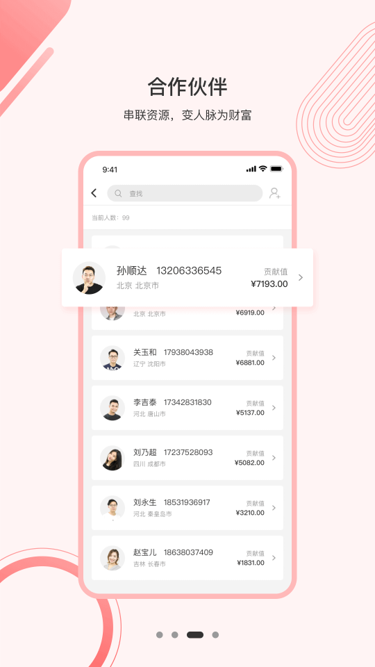 强大的资源整合能力,帮助用户建立完善的商业人脉网络,通过智能匹配和资源共享,将人脉资源转化为实实在在的商业价值,创造更多财富机会;