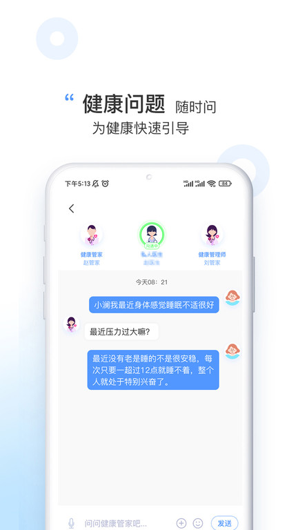 健康档案随时看、健康数据随时记、健康问题随时问、健康报告随身带、健康干预随时做、健康管家随时找、健康咨询随时看。新增了健康数据异常提醒功能,当检测到异常指标时会及时通知用户。