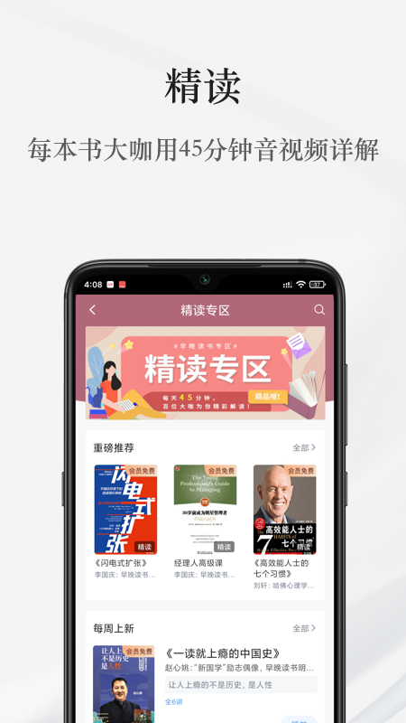 2. 音频和文字相结合的阅读形式,让用户随时随地获取知识,提升学习效率。