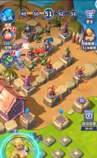 游戏采用轻松上手的放置玩法,单手即可完成所有操作,但策略深度丝毫不减。核心玩法融合了塔防布局、英雄养成和羁绊系统三大要素,玩家需要根据敌人类型灵活调整防御阵容。超过100个特色关卡和30种特殊挑战模式,保证游戏内容常玩常新。竞技场系统支持实时PVP对战,每日更新的天梯排行榜让顶尖玩家一较高下。定期推出的节日限定活动,更会带来意想不到的全新玩法体验。