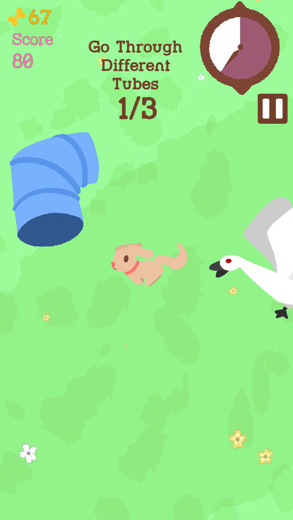 控制小狗狗的方向,尽情的和冒险,全新模式的玩法等你加入其中;通过滑动屏幕控制狗狗移动方向,长按屏幕可触发特殊技能,体验刺激的竞速快感。