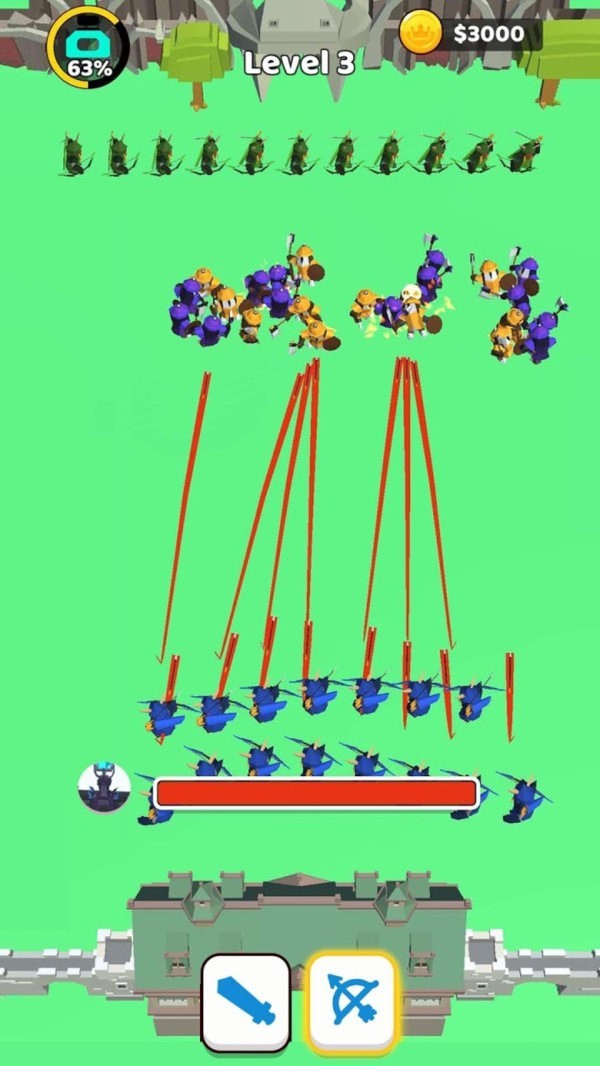 这款游戏的优势在于其高度自由的玩法设计。玩家画出的每一条线都会立即转化为士兵阵列,线条的形状直接决定了士兵的站位和攻击方向。这种独特的机制让每次战斗都充满变数,玩家可以根据战场形势随时调整战术。游戏还设置了丰富的关卡挑战,敌人出现的位置和数量都会不断变化,考验玩家的即时反应能力和战略思维。随着游戏进程的推进,玩家还能解锁更多画线技巧,让战斗方式更加多样化。