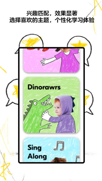 更多活动:包括星星单词、玩具宝库、当我长大了、我的身体、我们是一家人以及美味时光等多样化主题,满足不同孩子的兴趣需求。
