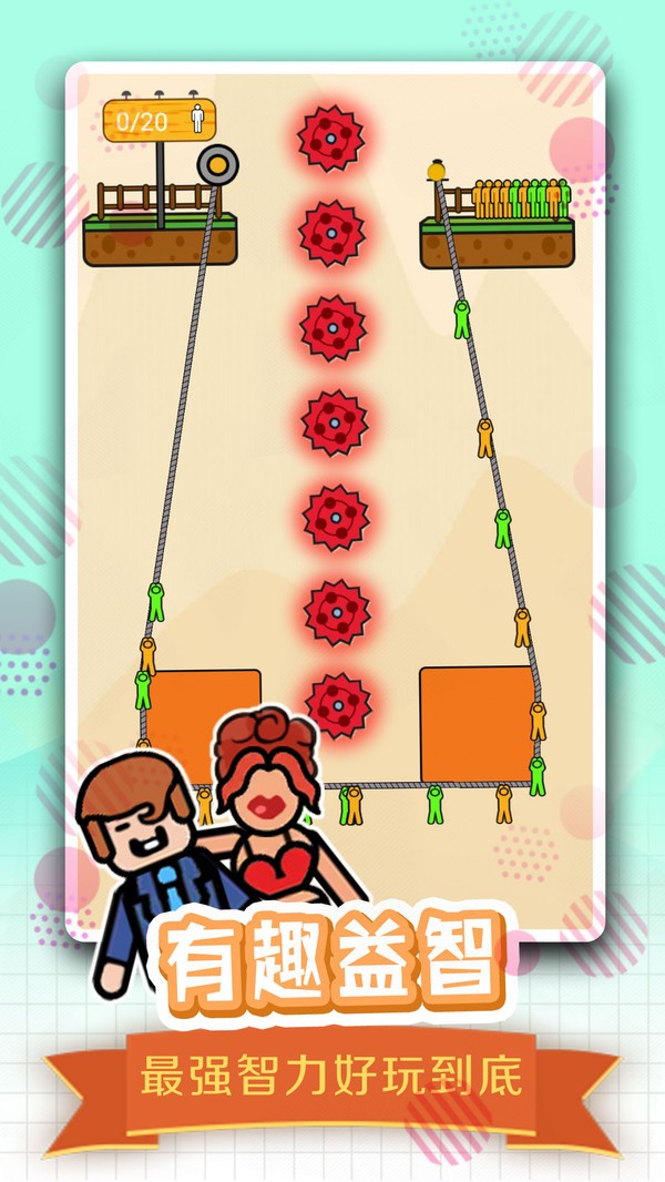 游戏的核心玩法是通过手指滑动连接绳索两端,为被困人员搭建安全通道。玩家需要仔细观察场景中的陷阱和障碍物,合理规划绳索路线。游戏加入了物理模拟系统,绳索的弹性和承重都会影响救援效果。随着关卡推进,还会出现需要同时救援多个目标的挑战,考验玩家的统筹规划能力。成功救出所有人员后,系统会根据救援时间和绳索使用效率给出星级评价。