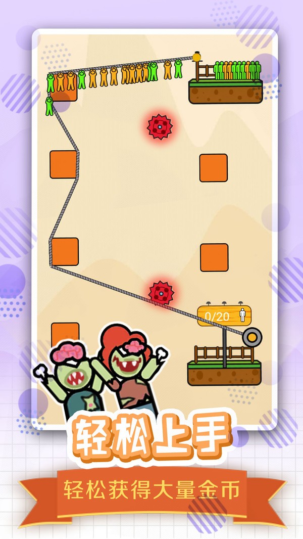 魔性的背景音乐为游戏增添了不少乐趣,同时也缓解了紧张的游戏氛围;超过100个精心设计的关卡可供挑战,每个关卡都有独特的场景布局和过关要求;多样化的被困人员外形设定,从探险家到小动物,让救援过程更加生动有趣;游戏中的绳索系统可以升级强化,不仅能提升传输速度,还能解锁特殊功能如防滑绳索和弹性绳索。此外,游戏还支持关卡编辑器,玩家可以创造并分享自己的独特关卡。