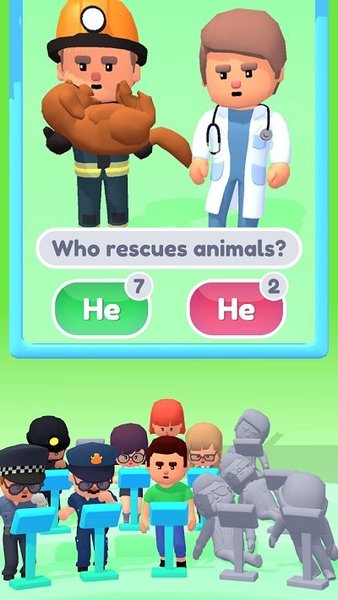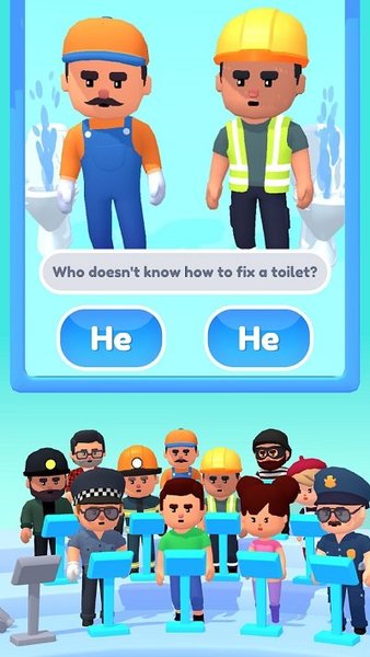 关卡设计丰富多样,从简单到困难循序渐进,能够有效锻炼玩家的逻辑思维能力。游戏玩法新颖独特,将传统问答与休闲娱乐完美结合,带来全新的游戏体验。游戏中有众多造型各异的小人角色,每个角色都会提出不同的问题,玩家需要通过分析对话内容找出正确答案。随着关卡推进,题目难度会逐渐增加,挑战性十足。此外游戏还设有每日任务和成就系统,让玩家获得持续的游戏动力。