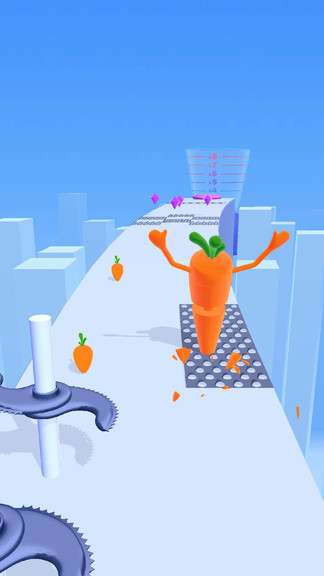 游戏中的障碍物设计独具匠心,特别是那些尖锐的障碍,一旦碰到就会让胡萝卜的体积缩小,大大增加了游戏的挑战性。成长系统是游戏的核心亮点,胡萝卜的体积越大,通过障碍的难度就越低,这也鼓励玩家尽可能多地收集小胡萝卜。游戏的终极目标是让胡萝卜在终点榨汁机中榨出尽可能多的果汁,这个独特的目标设定让游戏充满了成就感和趣味性。整个游戏过程既紧张刺激又充满欢乐,适合各个年龄段的玩家体验。