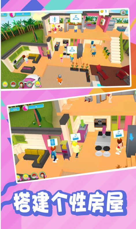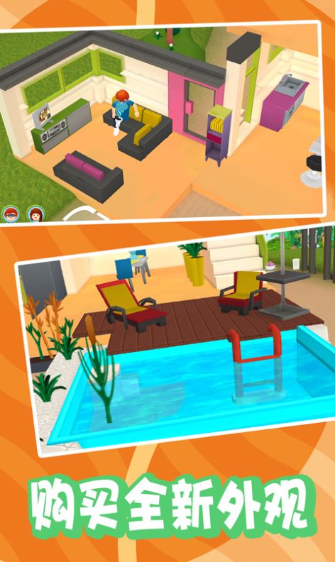 游戏提供丰富的房屋装扮系统,包含多种建筑风格和装饰主题。玩家可以自由搭配家具、壁纸、地板等元素,创造出独一无二的家居环境。随着游戏进程推进,还能解锁更多高级装饰物品,让你的设计创意得到充分展现。