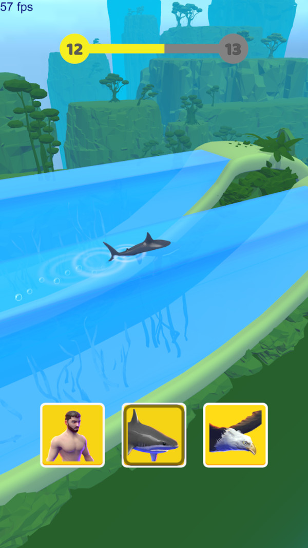 百变冲关是一款极具创意和趣味性的跑酷类手机游戏,它将传统跑酷玩法与变形机制完美结合,为玩家带来前所未有的游戏体验。在游戏中,玩家可以自由切换多种形态,包括老鹰、鲨鱼、人类等不同生物,每种形态都拥有独特的移动方式和特殊能力。比如变身为老鹰可以在空中翱翔,而鲨鱼形态则更适合在水中快速穿梭。这种创新的玩法设计不仅考验玩家的反应速度,更需要灵活运用不同生物的特性来应对复杂多变的关卡挑战。