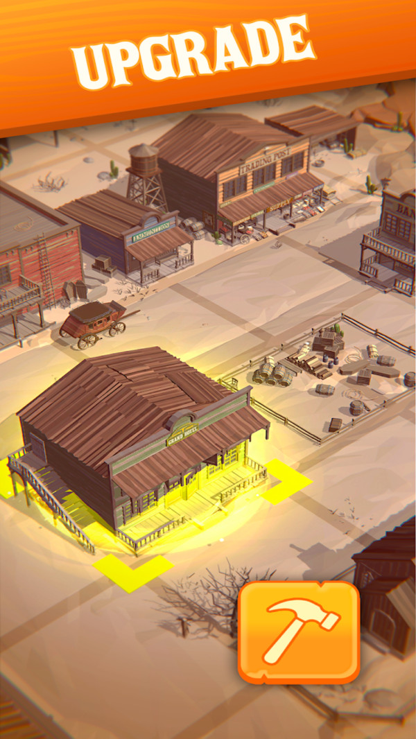 3D闲置狂野西部是一款极具魅力的3D模拟经营类手游,游戏以狂野西部为背景,采用独特的3D卡通画风,为玩家打造了一个充满自由与冒险的牛仔世界。在这里,你将扮演一名勇敢的牛仔,肩负起建设小镇的重任。游戏操作简单易上手,但玩法却异常丰富,玩家需要通过收集资源、建造设施、抵御敌人等多种方式,逐步将一片荒芜的沙漠打造成繁荣的西部小镇。