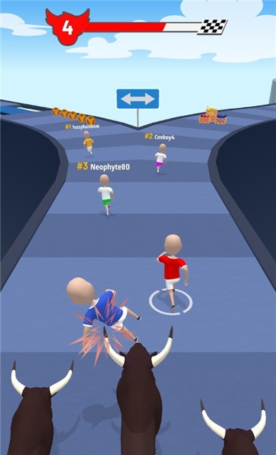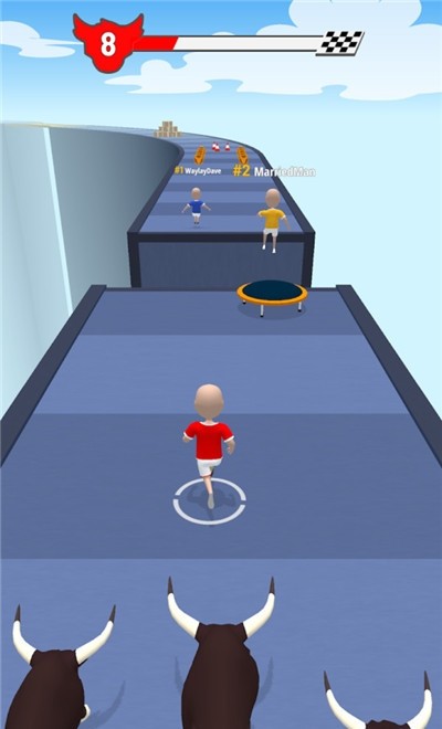 公牛别过来是一款极具创意的休闲竞技游戏,它将跑酷与生存挑战完美结合。在游戏中,多名玩家将同场竞技,而落后的选手将面临被公牛淘汰的危险。随着比赛进行,所有玩家的速度都会逐渐下降,这就意味着你必须保持领先优势,否则很容易被公牛追上。游戏过程中还需要灵活避开各种障碍物,一旦被公牛追上,你就会被带到山顶重新开始。游戏节奏紧张刺激,玩法简单却充满挑战性,绝对能让你体验到肾上腺素飙升的快感。还在犹豫什么?赶快下载游戏,开启你的跑酷冒险之旅吧!