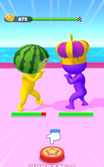《打拳模拟器》是一款融合格斗与跑酷元素的休闲动作游戏,为玩家带来独特的拳击对战体验。游戏中,玩家将操控角色在充满挑战的关卡中展开激烈战斗,通过灵活走位和精准出拳击败各式对手。除了核心的格斗玩法,游戏还加入了趣味跑酷环节,玩家可在场景中收集水果等奖励,解锁新角色和装扮道具。简洁的操作方式让新手也能快速上手,而丰富的关卡设计和多样的敌人类型则保证了游戏的可玩性。卡通风格的画面搭配轻松欢快的音效,营造出令人愉悦的游戏氛围。