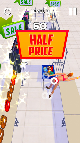 游戏完美模拟了现实中的购物欲望,让你可以毫无顾忌地疯狂扫货,享受满载而归的成就感。玩家将体验到最真实的商场购物场景,需要灵活躲避其他顾客,抢占最佳购物位置。游戏采用跑酷玩法为基础,加入了丰富的关卡设计和活动任务。你需要控制角色避开各种陷阱和障碍,比如突然关闭的电梯门、倒塌的货架等。随着游戏深入,还会解锁更多特殊道具和服装,让你的购物之旅更加精彩。
