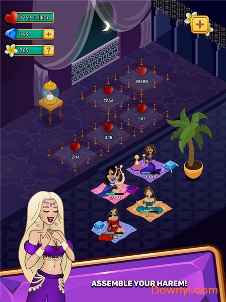 游戏的核心玩法围绕后宫建设展开,玩家需要精心挑选并培养后宫佳丽。通过完成日常任务和特殊活动,您可以获得珍贵资源来升级后宫设施。游戏特别设计了精灵系统,这些神秘的助手能够帮助您提升后宫管理效率。约会系统是游戏的一大亮点,玩家可以与心仪的佳丽进行各种浪漫互动,增进彼此感情。随着游戏进展,您将解锁更多后宫房间,每个新房间都能带来独特的游戏体验和收益加成。