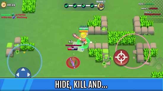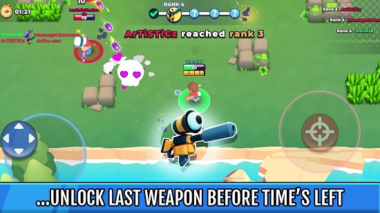 游戏采用直观的双摇杆操作设计,左侧控制移动,右侧负责瞄准射击,简单易上手但需要玩家灵活运用。游戏配以动感的背景音乐和逼真的射击音效,子弹命中时的反馈效果令人满意。清新可爱的卡通画风贯穿整个游戏,从角色设计到场景布置都充满趣味性,为激烈的战斗增添了一份轻松愉悦的氛围。游戏整体节奏明快,既能满足休闲玩家的娱乐需求,也能为竞技玩家提供足够的挑战空间。