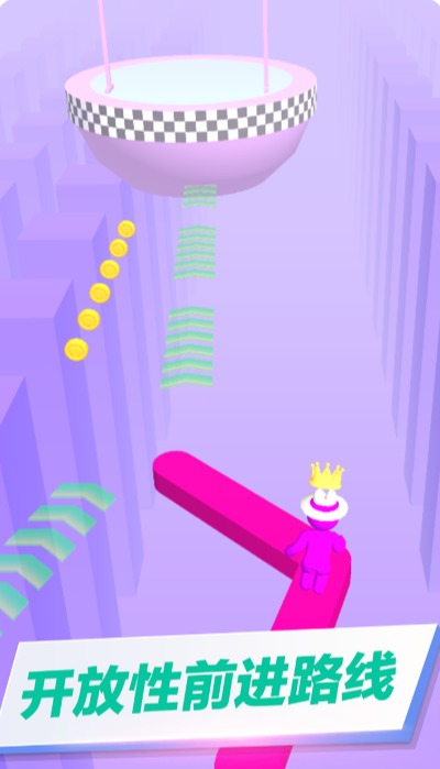 《搭路快跑》是一款极具创意的跑酷类手游,与传统跑酷游戏不同,玩家需要自己搭建前进的道路。游戏采用独特的旋转道路机制,玩家需要一边快速奔跑,一边实时调整道路方向,同时还要提防其他玩家的偷袭。这种创新的玩法将跑酷与策略完美结合,带来前所未有的游戏体验。游戏画面简洁明快,操作简单易上手,但充满挑战性,适合各个年龄段的玩家。