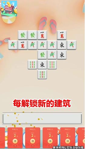 在这款游戏中,你将化身为岛屿规划师,精心设计住宅区、商业区和工业区的布局。每个区域的合理规划都会影响岛屿的发展速度,科学的布局能让你的小岛更加繁荣昌盛。放置的建筑物会持续产生收益,通过升级可以大幅提升每分钟的产出效率。特别的是,游戏创新性地融入了麻将消除玩法,通过完成消除挑战可以解锁更多特色建筑,建筑种类越丰富,你的收益增长就越快,让岛屿建设充满惊喜和期待。