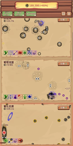 从最基础的生物体开始,在进化之树上不断攀登高峰。游戏采用渐进式成长系统,让玩家能够直观感受到细菌的每一次蜕变。在微观世界中,你的细菌可以通过吞噬其他微生物来获取能量点,这些能量点是进化的关键资源。每次进化都会赋予细菌随机的特殊能力,可能是更快的移动速度,也可能是更强的吞噬能力。随着游戏深入,细菌可以发展出多种形态,每种形态都有独特的强化方向,让玩家可以打造属于自己的终极细菌。