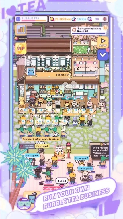 泡泡茶大亨拥有丰富多样的角色形象和萌趣十足的猫咪伙伴,这些可爱的员工不仅能提升店铺人气,还会带来各种特殊技能。玩家需要通过合理搭配原料、研发新品来满足不同顾客的口味需求,随着店铺收益的增加,可以解锁更多装饰元素和分店位置。游戏特别设计了季节限定活动和节日主题装饰,让经营过程充满新鲜感。看着自己的茶饮品牌从街边小店成长为知名连锁,这种成就感绝对会让你欲罢不能。