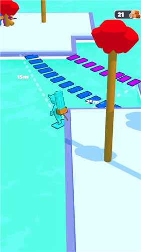 游戏采用清新明亮的卡通画风,场景设计简约而不失精致,色彩搭配活泼生动,为玩家营造出轻松愉快的游戏氛围。虽然画面风格偏向简约,但细节处理到位,角色动作流畅自然,树木砍伐和桥梁搭建的特效表现也十分有趣,能够带给玩家愉悦的视觉体验。