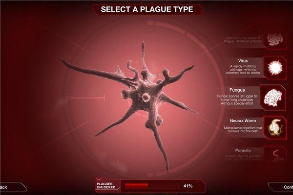 选择您所使用的瘟疫类型,根据自己的战术需求做出决定。游戏包含细菌、病毒、寄生虫等多种病原体类型,每种都有独特的传播特性和进化路线。您还可以自定义病原体外观和名称,打造专属瘟疫。