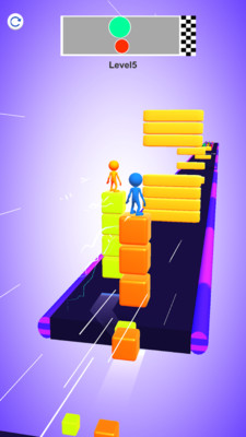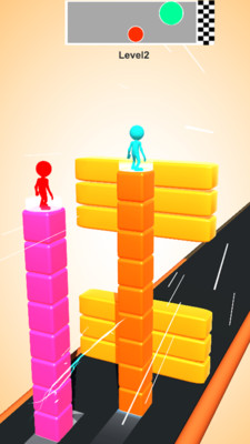 游戏包含众多精心设计的小关卡,每个关卡都有独特的闯关方案等待玩家探索。通过简单的滑动操作,玩家就能创造出惊人的成绩,并以此挑战好友。游戏中设有多种特殊元素,如彩色开关平台和堆叠楼梯,玩家需要巧妙利用这些元素来战胜对手。在闯关过程中,玩家需要越过各种障碍物,通过堆叠楼梯来避开危险,体验不同的挑战乐趣。