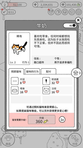 猫咪真的超可爱创新性地加入了猫咪社区建造系统,玩家可以自由规划包含游乐场、猫咖等设施的猫咪小镇。游戏支持离线挂机玩法,即使下线猫咪也会自主活动并产生收益。最令人惊喜的是AI行为系统,每只猫咪会基于个性算法做出挠沙发、追尾巴等拟真动作。定期更新的季节活动还会带来限定装扮和特殊互动,保证游戏内容常玩常新。