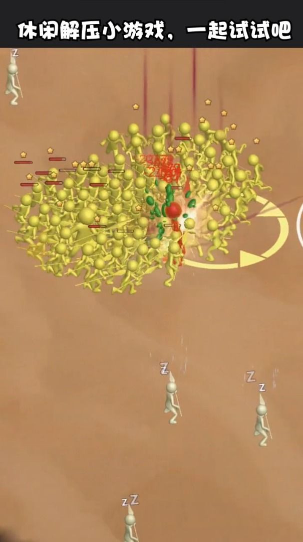 游戏采用简单易懂的操作方式,配合色彩鲜明的界面设计,让玩家能够快速上手。独特的吞噬玩法让战斗充满变数,玩家需要不断发展壮大自己的队伍,直到成为战场上最后的幸存者。游戏中每个队伍都有独特的颜色标识,当遇到规模更大的敌方队伍时,明智的选择是暂时撤退,等待反击的最佳时机。这种动态平衡的战斗系统为游戏增添了更多策略深度。