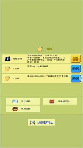 免广告获得芒果,足够芒果使用不减反加(点击左下方设置可以看到)。此外,游戏还提供了详细的帮助系统,新手玩家可以快速掌握游戏要领。内置菜单功能让玩家可以自由调整游戏参数,获得更个性化的游戏体验。
