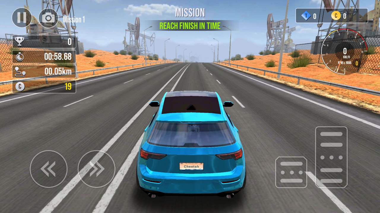 游戏采用经典的双侧操作布局,左侧为精准的方向控制键,右侧则是油门和刹车踏板。这种设计既符合真实驾驶习惯,又能提供灵敏的操控体验。按键大小和位置都经过精心调整,确保在各种设备上都能获得最佳操作手感。