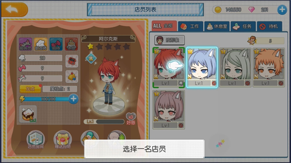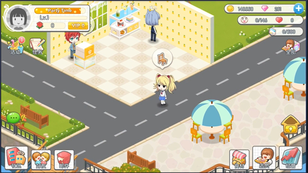 甜品店经营系统包含50多种可制作的点心,每种都有详细的教学动画。店铺装修支持自由布局,超过1000种家具可供选择。通过"猫咪助手"系统,可以指派特定角色负责不同岗位,根据他们的特长获得营业加成。店铺达到一定规模后,还能开设分店和举办主题茶会!