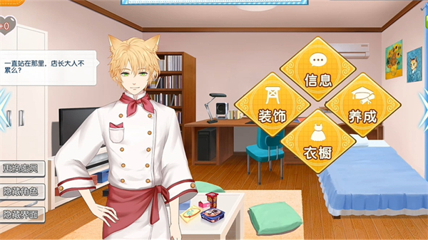 独创"双形态互动"系统,所有猫咪男友都可以在人类形态和猫咪形态间自由切换。人类形态时可进行约会、工作等互动,切换为猫咪形态后则能享受真实的撸猫体验。特别设计的"猫咪咖啡厅"场景中,玩家可以同时与多只猫咪互动,使用逗猫棒、猫零食等道具增加亲密度,观察不同品种猫咪的独特反应!