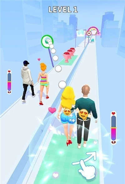 在《恩爱竞赛》中,你将体验到前所未有的情侣互动跑酷乐趣!这款创意手游以独特的双人合作玩法为核心,玩家需要同时操控一对情侣角色,在充满挑战的赛道上默契配合。随着感情的升温,角色的移动速度会越来越快,让你们的爱情在奔跑中绽放。游戏精心设计了丰富的关卡和奖励机制,每完成一个目标都能解锁新内容,从时尚装扮到特殊技能,让每对情侣都能打造专属的甜蜜冒险。无论是想增进感情还是寻找新鲜玩法,这款游戏都能带来意想不到的惊喜体验。