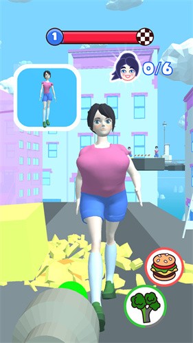 游戏采用明亮活泼的卡通画风,所有角色都拥有夸张搞笑的表情动作。每个关卡都设计了独特的背景场景,从快餐店到生日派对,营造出丰富的游戏氛围。食物被击中时的特效动画充满喜感,搭配搞笑的音效让人忍俊不禁。游戏还加入了换装系统,成功帮助小姐姐减肥后可以解锁各种时尚服饰。随着游戏进行,你还能解锁隐藏的特殊关卡,体验更加疯狂的减肥挑战。