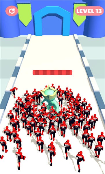 在这款充满创意的游戏中,你将体验到前所未有的群体战斗乐趣。游戏背景设定在一个充满活力的城市,你需要不断招募新的超级英雄加入你的队伍。随着游戏进程,你的团队会越来越庞大,但挑战也会随之升级。每个关卡都经过精心设计,从狭窄的街道到开阔的广场,地形变化会直接影响你的战术选择。游戏最大的亮点在于最终关卡,你将率领你精心培养的人群军团,与守卫城堡的超级英雄国王展开一场规模宏大的终极对决。