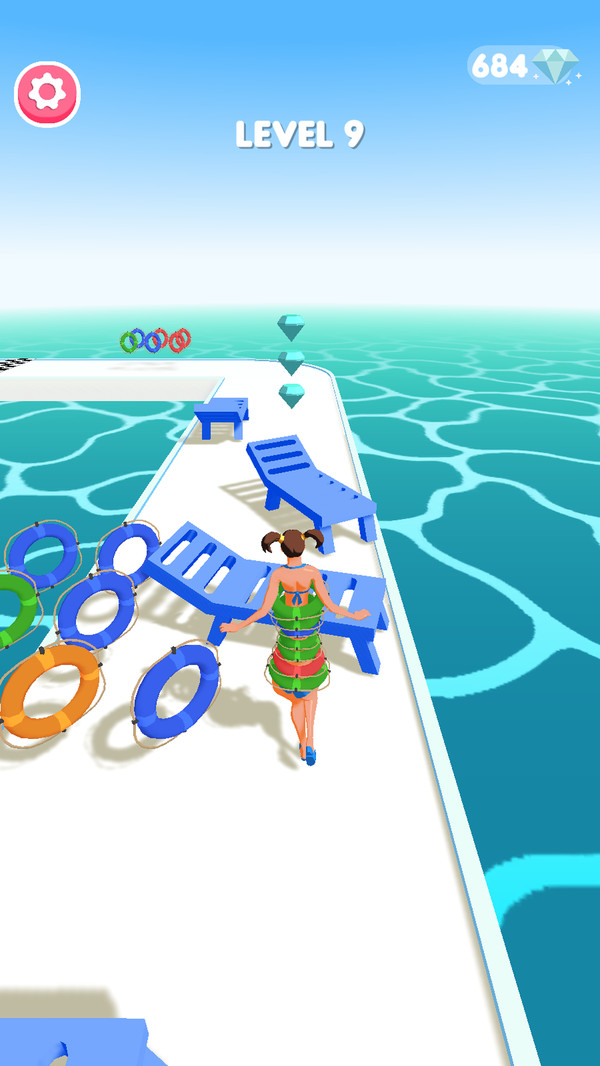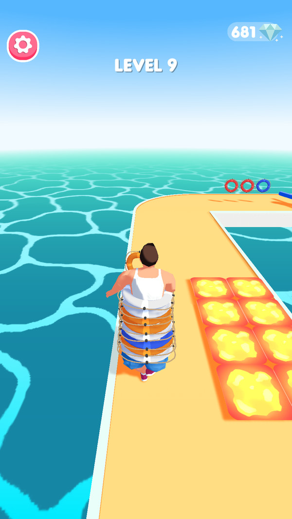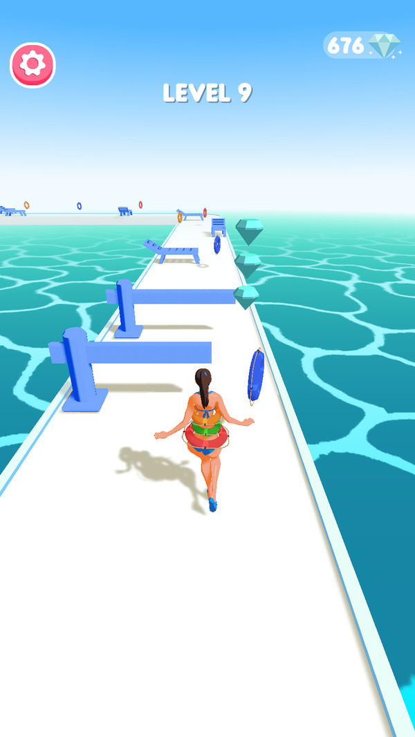 尽可能多地搜集游泳圈,不仅能够帮助玩家取得分数,还能保护玩家安全。每收集一个游泳圈都会让角色体型变大,形成独特的保护层。当碰到障碍时,游泳圈会逐个消失,为玩家提供缓冲机会。特殊造型的游泳圈还能带来额外加分,收集它们能让分数快速攀升。