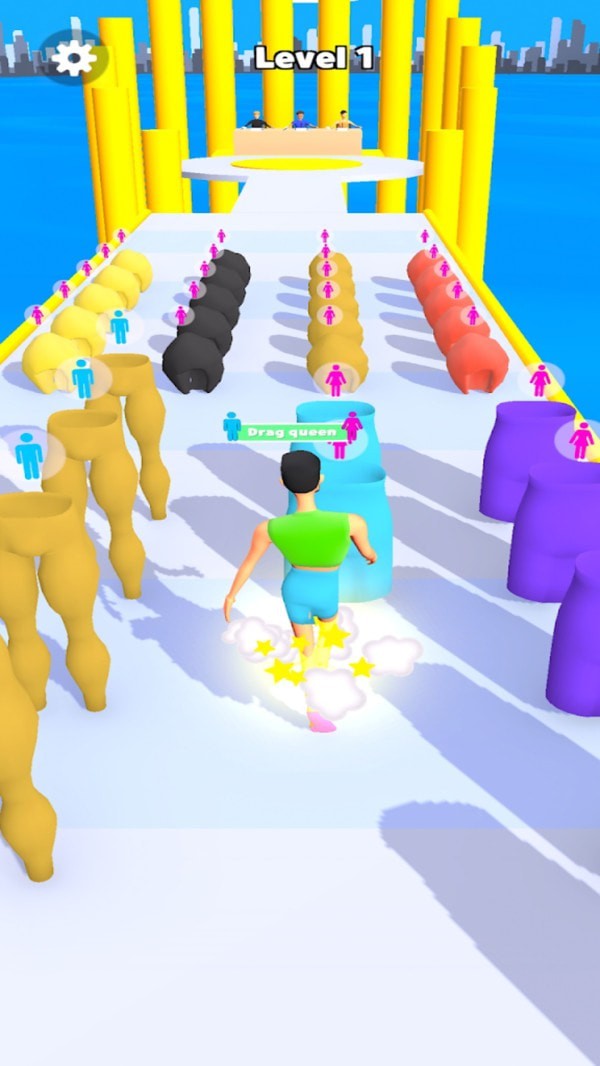 游戏最大的特色在于其独特的变装皇后主角设定,打破了传统跑酷游戏的常规,为玩家带来耳目一新的体验。主角夸张的造型和幽默的动作设计,让整个游戏过程充满欢乐。