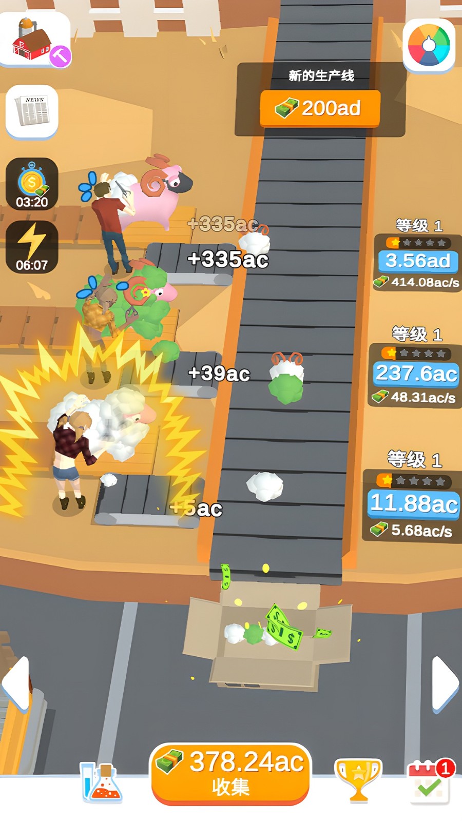 生产等级越高,新增生产线越多,获得的利益就越多,玩家将成为不折不扣的大亨。通过不断解锁新内容,游戏体验将更加丰富,让你感受到农场经营的无限可能。
