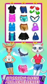 游戏最大的特色在于其丰富的自定义系统。玩家可以使用各种精美的配饰,如蝴蝶结、眼镜等来装饰动物,让每个造型都充满个性。游戏提供了丰富的色彩选择,让玩家可以充分发挥想象力,创造出独一无二的美容效果。
