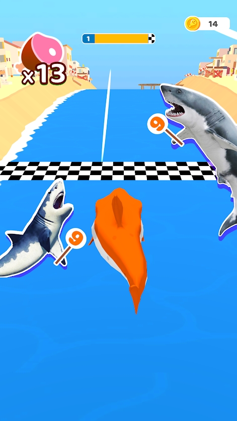 在《鲨鱼跑》中,玩家将沉浸在一个色彩斑斓的水下世界,操纵鲨鱼在蜿蜒的河流中畅游。游戏采用精致的3D建模和流畅的动画效果,让鲨鱼的每一个动作都栩栩如生。除了基础的跑酷玩法,游戏还融入了“大鱼吃小鱼”的经典机制,玩家需要通过吞食小鱼来加速并积累能量。完成挑战后,丰厚的奖励将帮助你解锁更多强力道具和稀有鲨鱼皮肤,让你的冒险之旅更加丰富多彩。