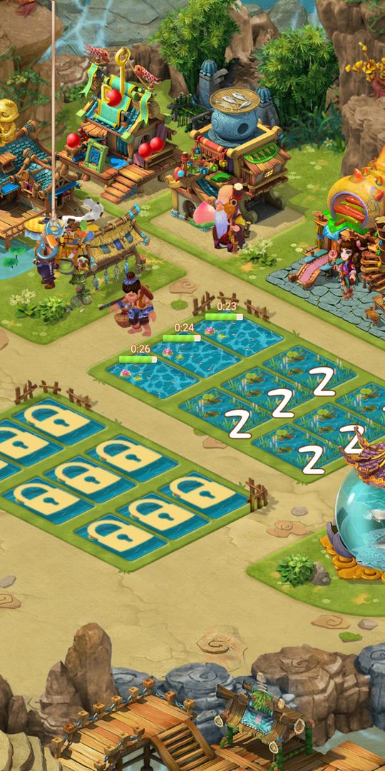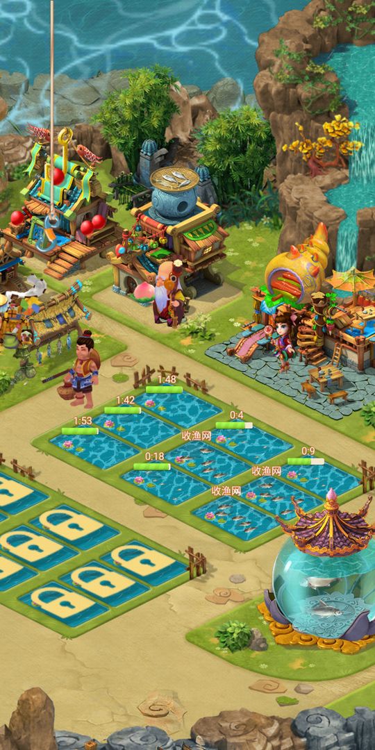 随着等级提升,可以解锁更多池塘区域,打造专属水产养殖基地;