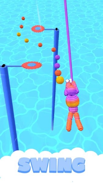游戏的核心玩法围绕着绳索收集与消耗展开。玩家需要在关卡中尽可能多地收集绳索碎片,增加角色长度。另一方面,在关卡终点处,玩家可以选择消耗部分绳索来兑换丰厚的钻石奖励。如何在关卡中平衡绳索收集与保留,在最终结算时获得最大收益,是玩家需要认真考虑的策略重点。关卡中遍布着各种危险的障碍物,包括旋转的齿轮、飞射的斧头、坚固的墙壁以及需要精准操作的摆荡点。每次触碰这些障碍都会导致绳索长度大幅减少,因此玩家必须谨慎规划行进路线,巧妙避开这些威胁。随着游戏进程,玩家还能解锁特殊技能和道具,帮助应对更具挑战性的关卡。