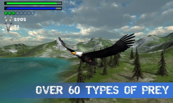 能在空中飞行和探索,敏锐的视力能帮助你轻易的探查到更多猎物。游戏采用拟真视觉系统,老鹰的视野范围可达8公里,并能切换红外模式追踪体温特征。