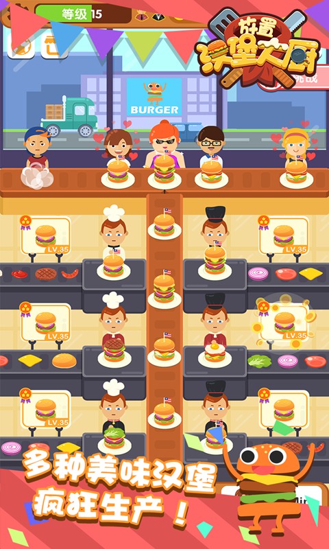趣味挑战系统:除了日常经营,游戏还设置了各种趣味挑战。有时会遇到挑剔的美食评论家,有时会有竞争对手来踢馆,用美味的汉堡征服他们吧!
