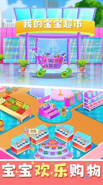 【丰富小游戏】:除了主要玩法外,游戏还内置了多个趣味小游戏。比如在生鲜区可以玩捞鱼游戏训练手眼协调,在烘焙区可以自由搭配蛋糕培养创造力,在化妆品区可以学习基础色彩搭配。这些小游戏既丰富了游戏内容,又拓展了孩子的多元智能发展。