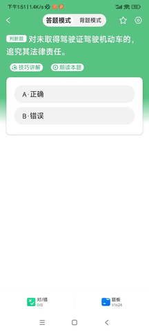 口诀技巧助力记题背题,通过科学记忆法将复杂交规转化为朗朗上口的短句。解放双眼的语音学习模式,让用户可以在通勤、运动等场景随时巩固知识。所有练习题目均来自真实考试题库,包含最新交通法规和路标识别等内容,确保学习与考试无缝衔接。更有智能难度调节系统,根据用户掌握程度自动调整题目难度。