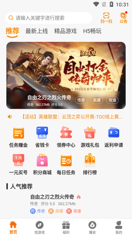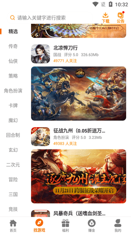 首先在本站下载安装九歌互娱APP,打开软件后即可看到精美的主页界面。进入首页后,用户可以看到很多热门推荐游戏,也可以通过分区筛选功能快速找到心仪的游戏类型。平台设有专门的福利专区,在这里可以领取每日签到奖励、新手礼包等各种丰厚奖励。操作简单直观,即使是新手也能快速上手,享受游戏带来的乐趣。