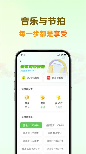 应用内置海量180bpm节拍音乐,您可以根据喜好选择适合的节奏,让跑步过程更加轻松愉快。音乐与节拍的完美结合,不仅能让您享受跑步的乐趣,还能有效减少对膝盖的冲击,保护您的关节健康。